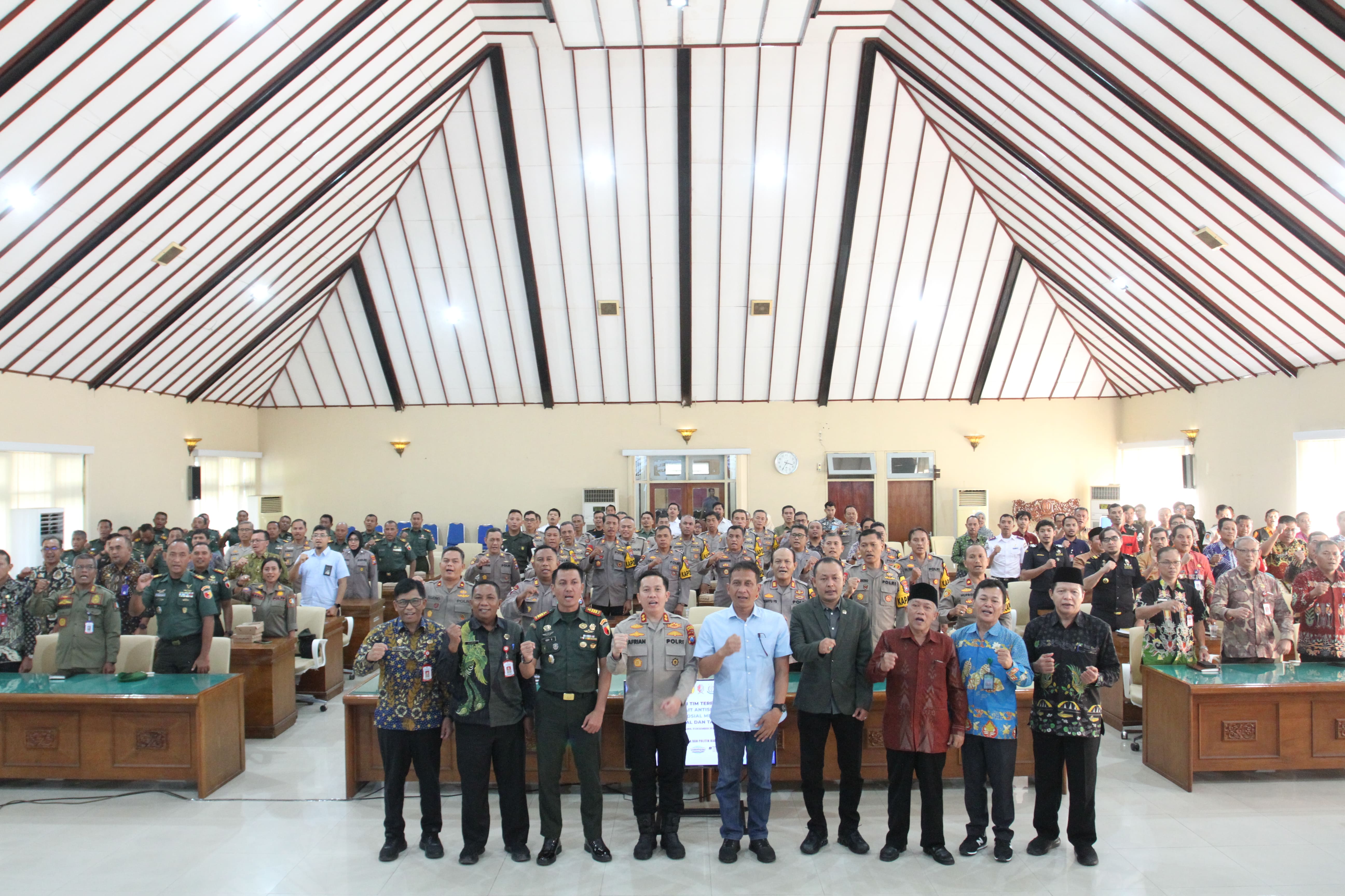 Rapat yang berlangsung dengan dihadiri Bupati Bojonegoro H. Setyo Wahono, Sekretaris Daerah, Forkopimda, Kapolres, serta seluruh instansi dan OPD terkait ini menjadi forum strategis untuk menyamakan persepsi dan memperkuat sinergi lintas sektor dalam menjaga kondisi sosial masyarakat tetap kondusif.